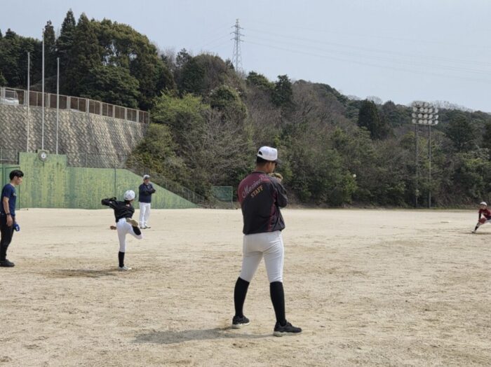 先日、柳井市の少年野球チーム「うずしおマリーンズ」で野球教室を開催いたしました。